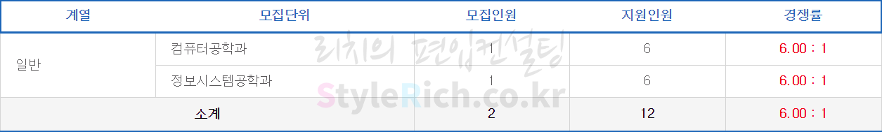 컴퓨터공학과와 정보시스템공학과의 경쟁률은 같았습니다.
