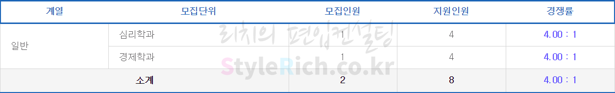 심리학과와 경제학과의 경쟁률이 같았습니다.