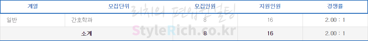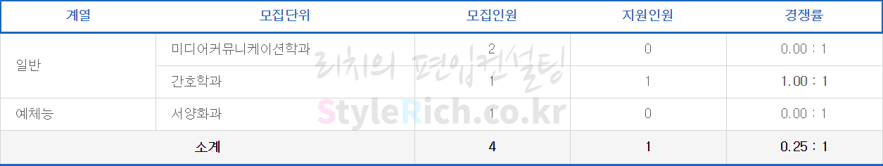 간호학과만 정원을 충족하였고 미디어커뮤니케이션학과와 서양화과는 정원 미달이었습니다.