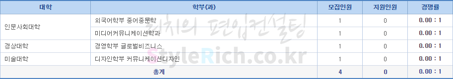 2019학년도 수원대 재외국민 편입학 전형별 경쟁률 현황