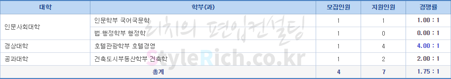 2019학년도 수원대 농어촌편입학 전형별 경쟁률 현황