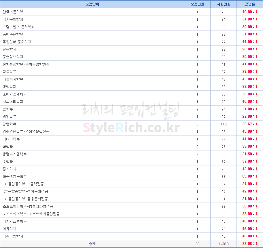 2019학년도 숙명여대 학사편입 경쟁률 현황