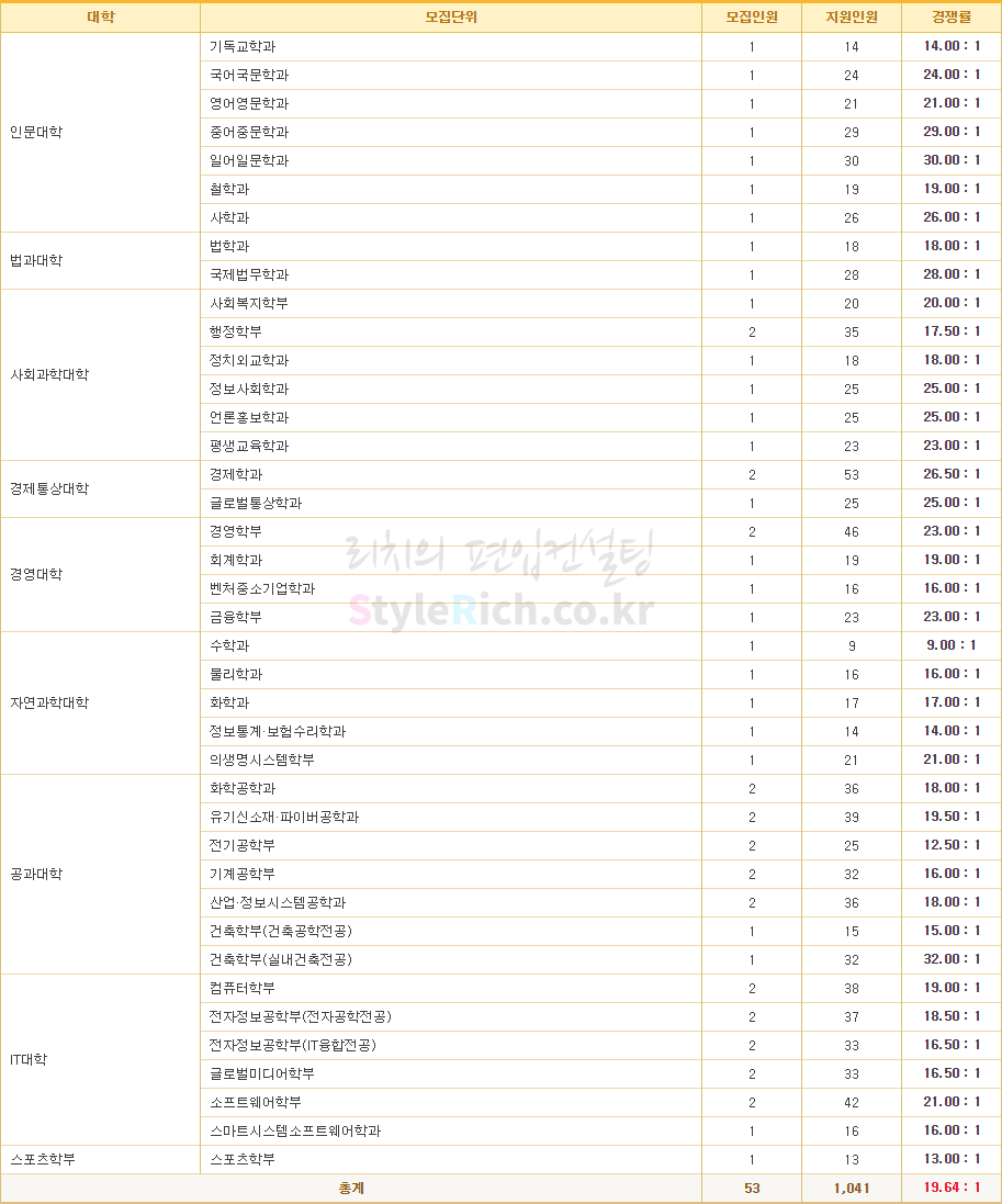 2019학년도 숭실대 재외국민 편입학 경쟁률 현황