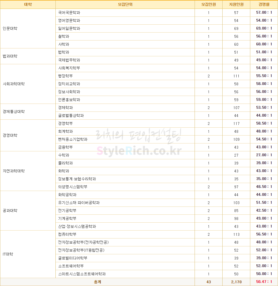 2019학년도 숭실대 편입 전형별 경쟁률 현황