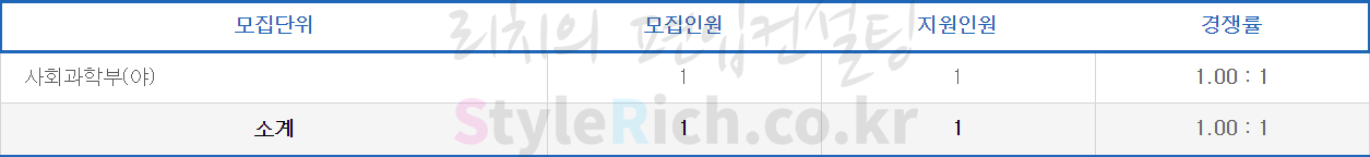 사회과학부(야)만 모집하였고 정원 충족하였습니다.