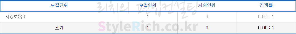 서양화(주)만 모집하였고 정원미달이며, 지원자가 없었습니다.