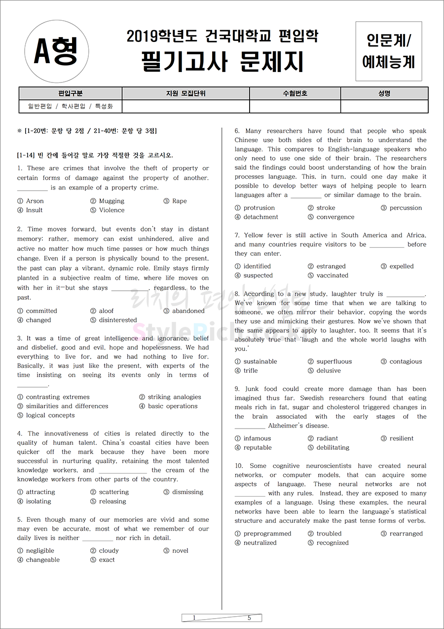 2019학년도 건국대 편입 기출문제가 궁금하다면?