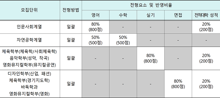 2019학년도 명지대 편입 전형요소 및 반영비율