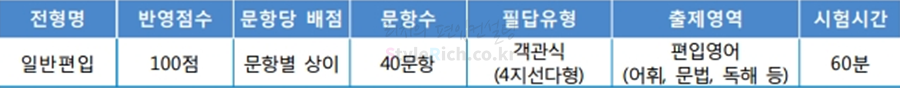 앞에서 언급한 것과 같이 일반편입과 학사편입 영어고사는 동일한 문제와 내용으로 구성되어 있습니다.