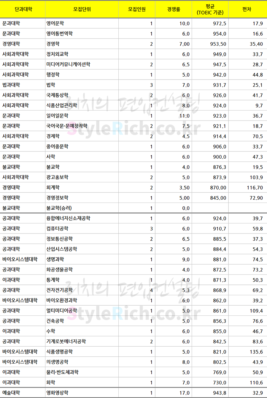 2019학년도 동국대 학사편입 1단계 합격자 토익 평균점수
