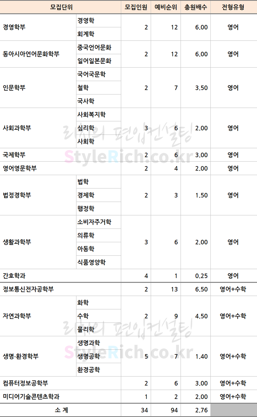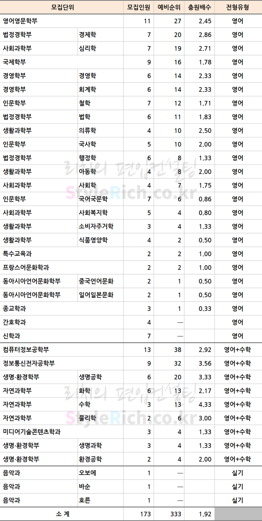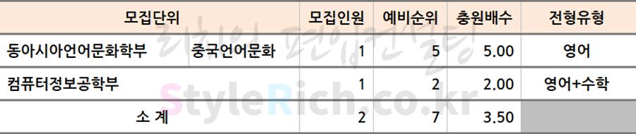 * 모집단위 정렬은 영어, 영어+수학, 실기전형 학과로 분류한 후 추가합격이 많은 순으로 정렬되어 있습니다.