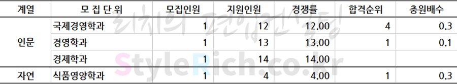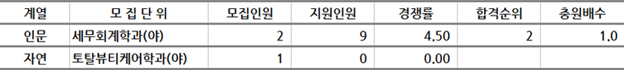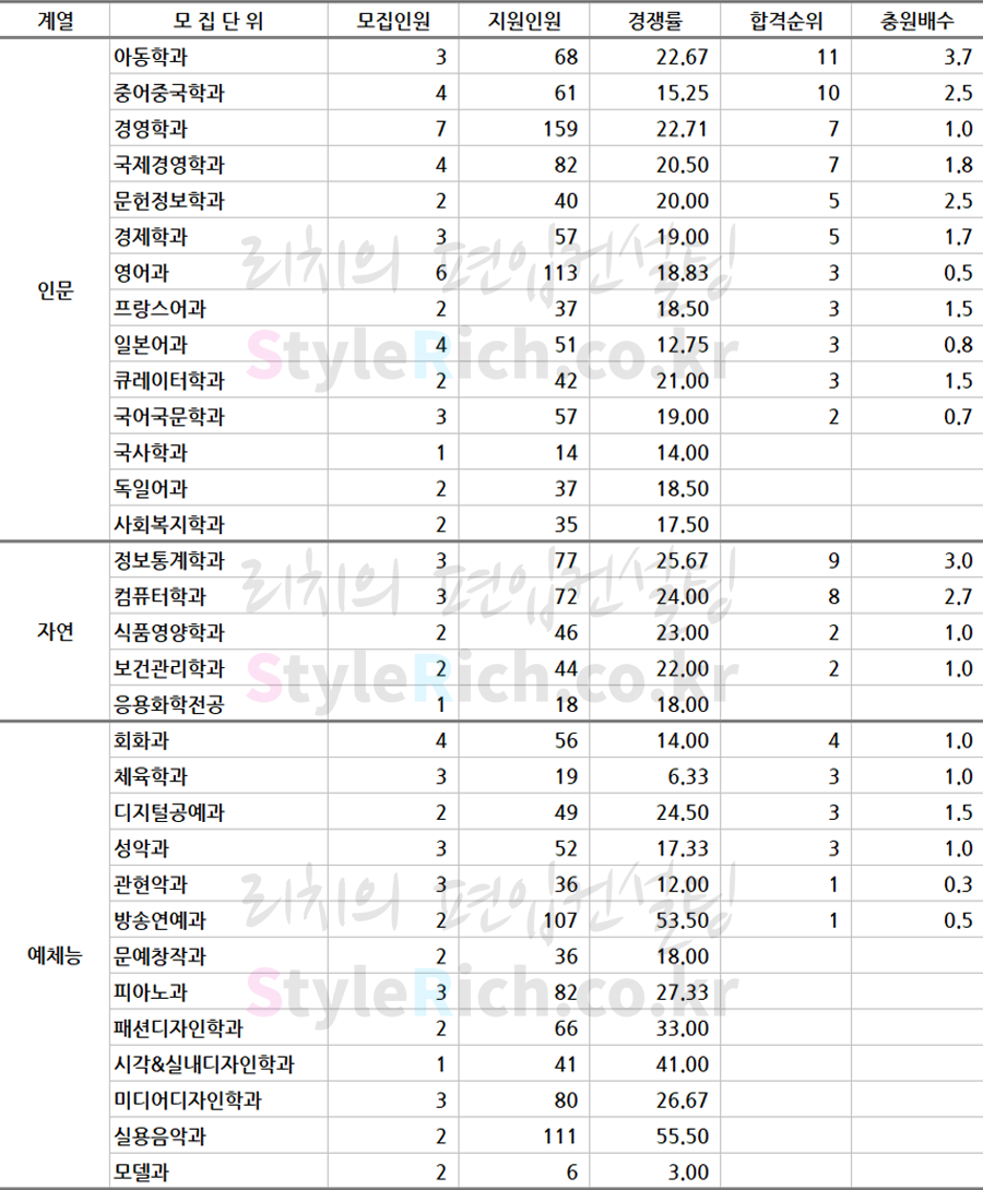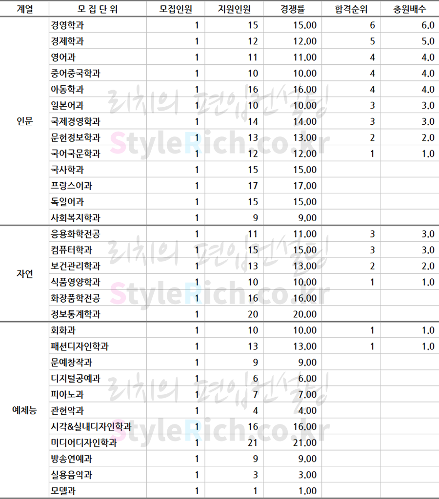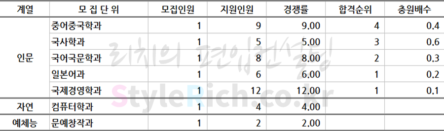 * 모집단위는 인문, 자연, 예체능으로 분류 후 추가합격이 많은 순으로 정렬되어 있습니다.