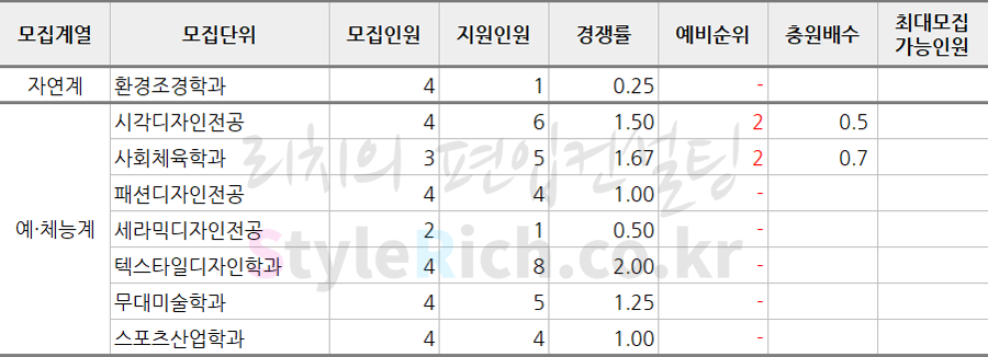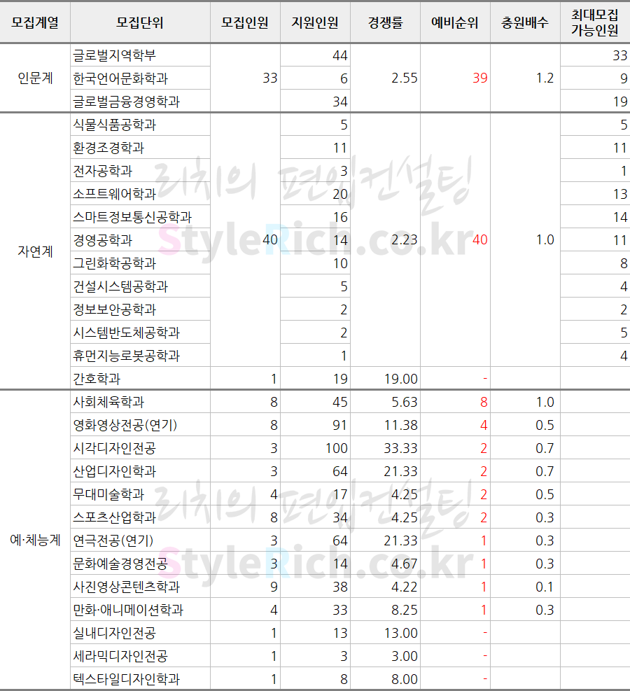 * 모집단위는 인문계, 자연계, 예·체능계로 분류 후 추가합격이 많은 순으로 정렬