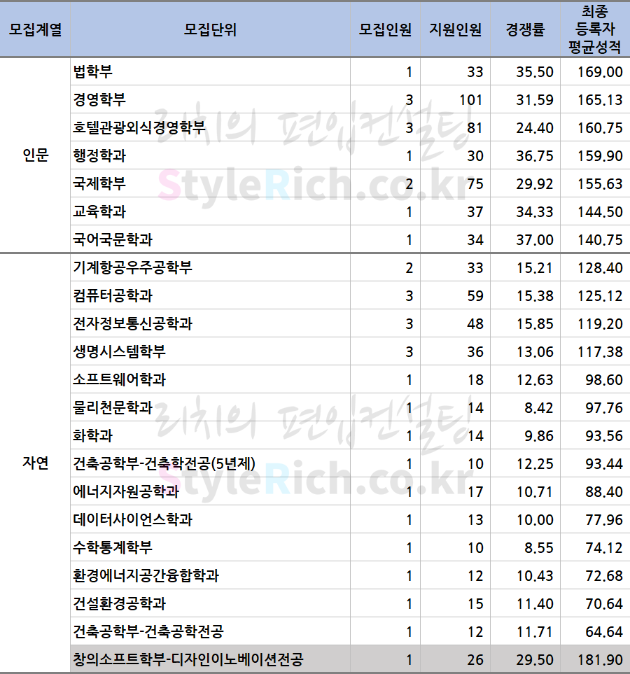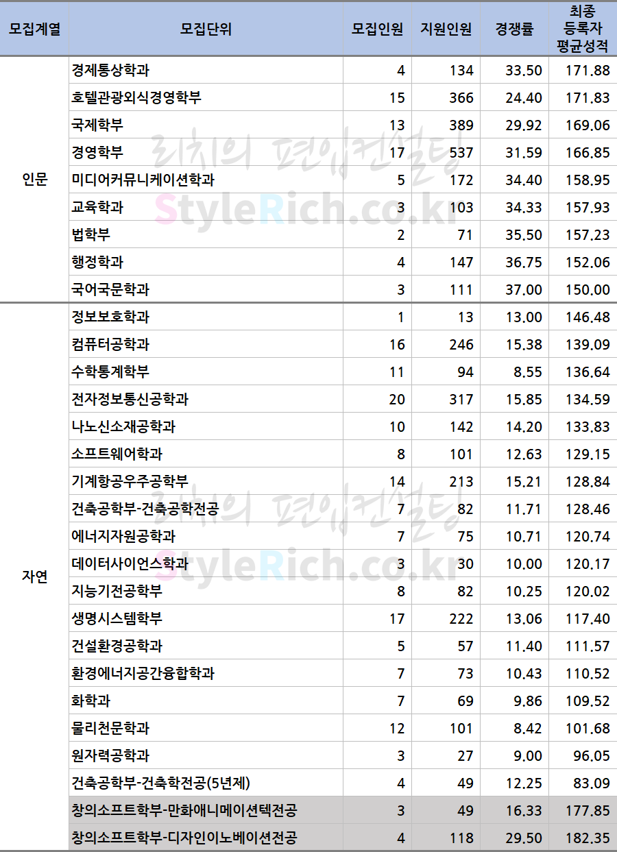 * 모집단위는 인문, 자연으로 분류되어 최종등록자 평균성적 순으로 내림차순 정렬