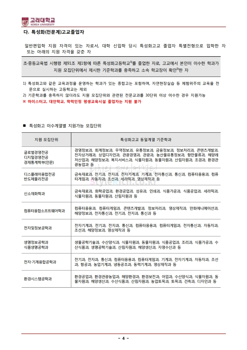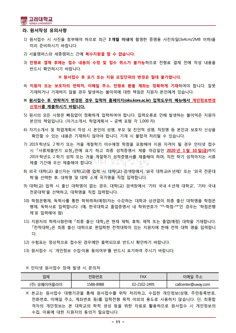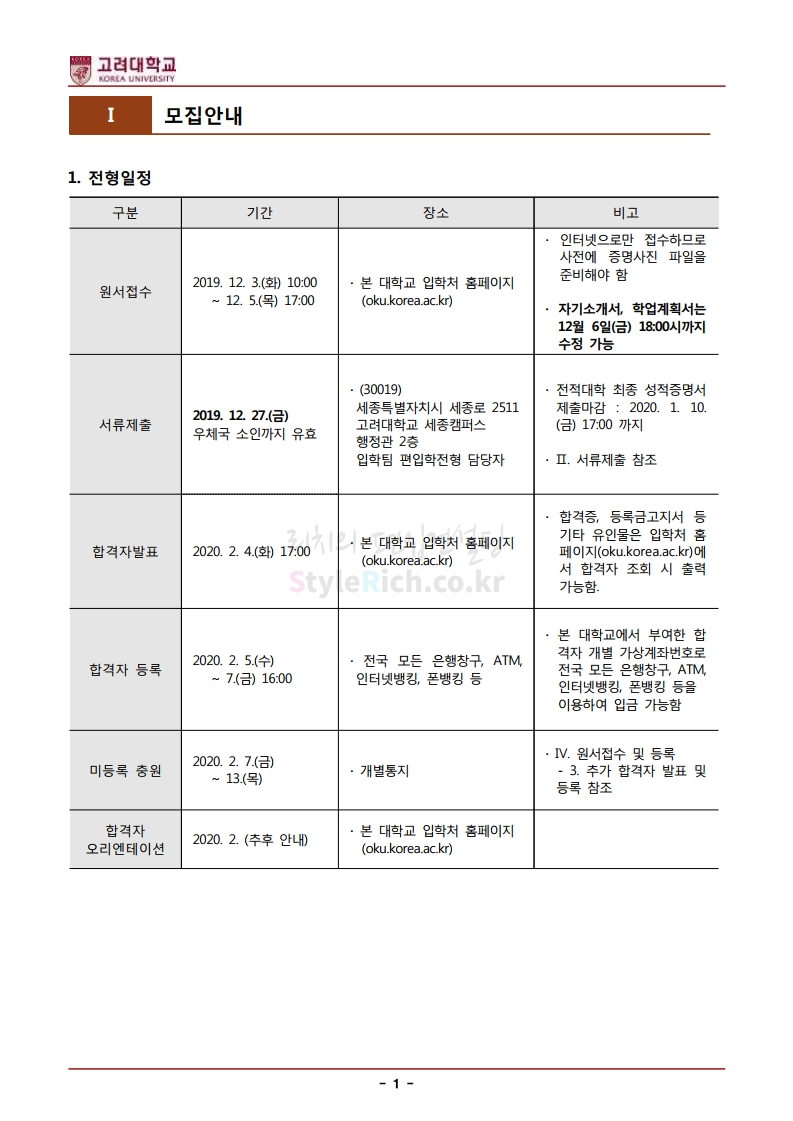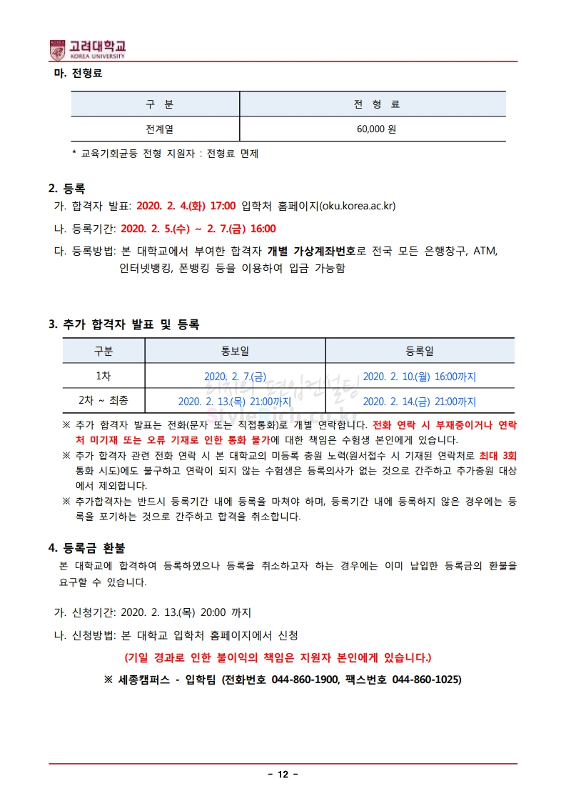 * 최종 모집요강 발표 후에도 일부 내용이 변경될 수 있으니 지원 전 반드시 고려대(세종) 입학처의 모집요강을 확인하시기 바랍니다.