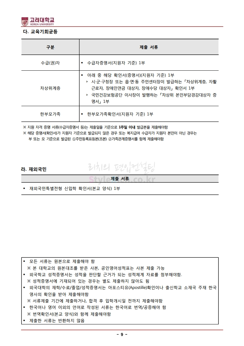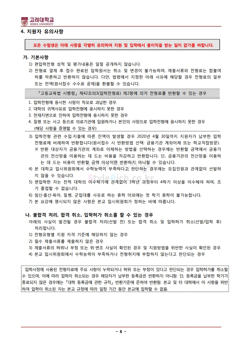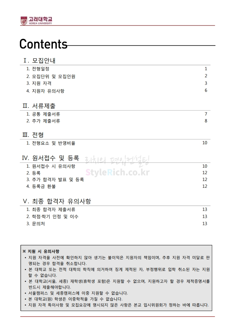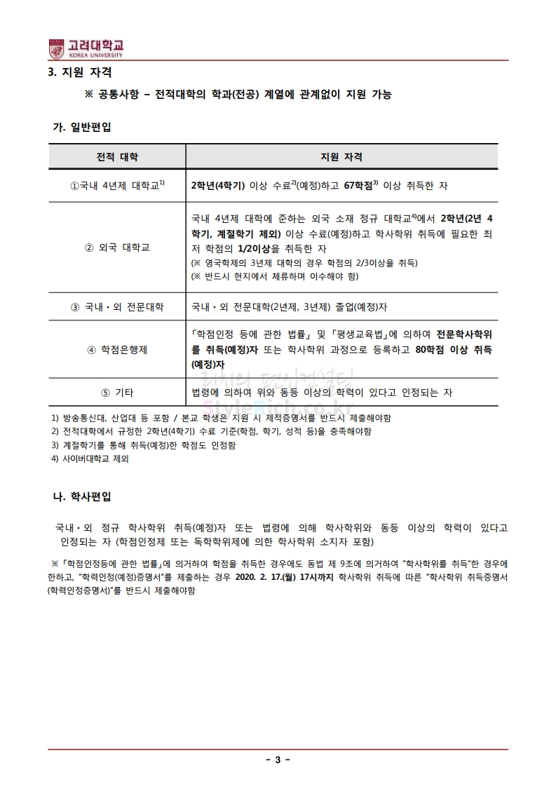 * 최종 모집요강 발표 후에도 일부 내용이 변경될 수 있으니 지원 전 반드시 고려대(세종) 입학처의 모집요강을 확인하시기 바랍니다.