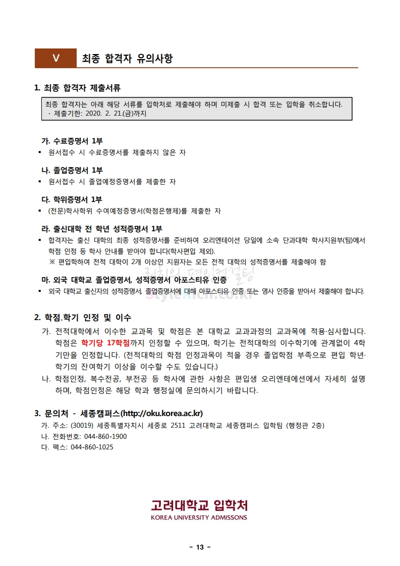 2020학년도 고려대(세종) 편입 모집요강을 간편하게 확인하세요.