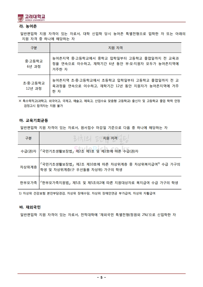 * 최종 모집요강 발표 후에도 일부 내용이 변경될 수 있으니 지원 전 반드시 고려대(세종) 입학처의 모집요강을 확인하시기 바랍니다.