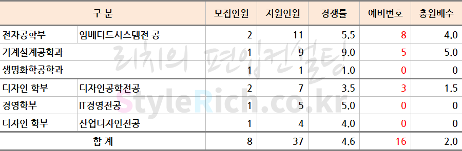 * 학과정렬은 자연계, 비자연계(경영학부, 디자인학부)로 분류 후 추가합격이 많은 순으로 정렬