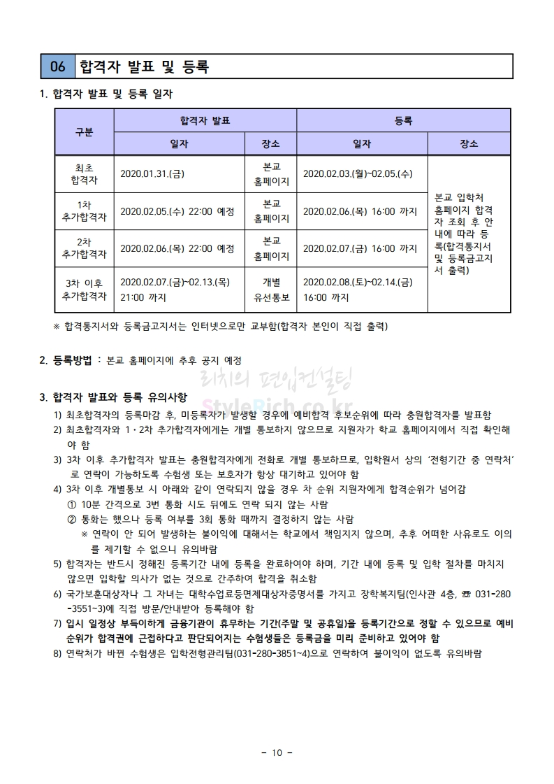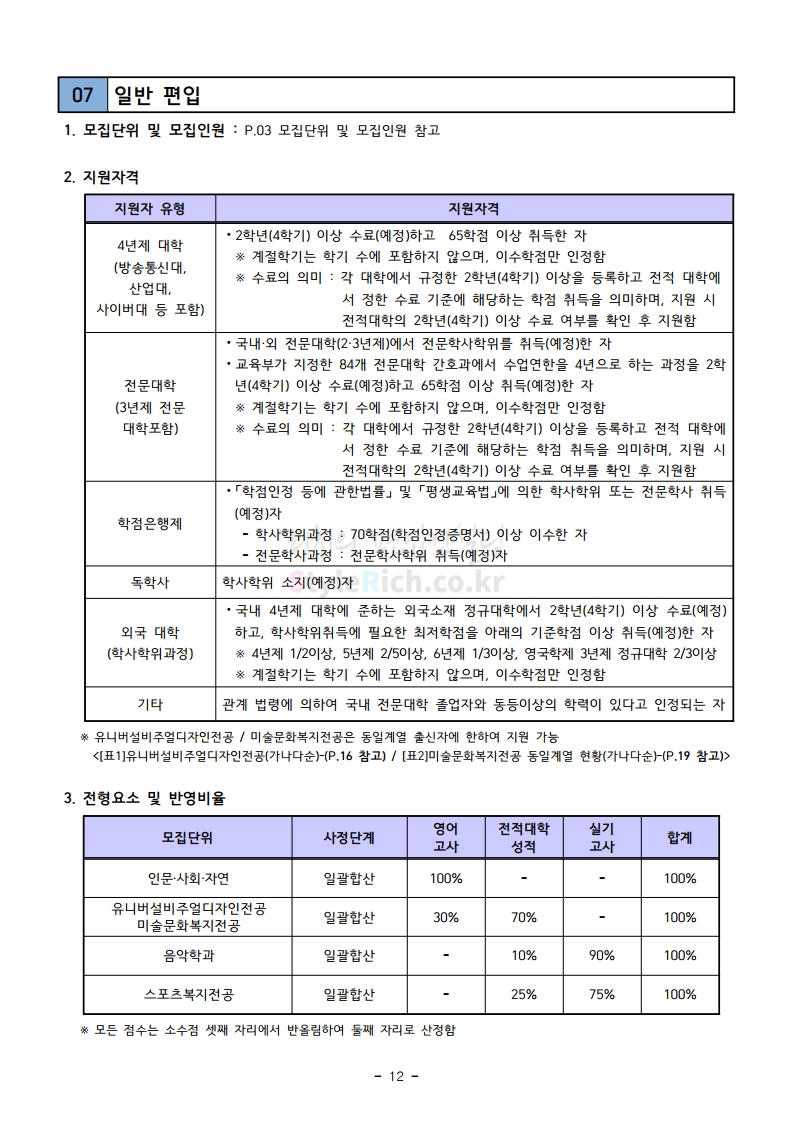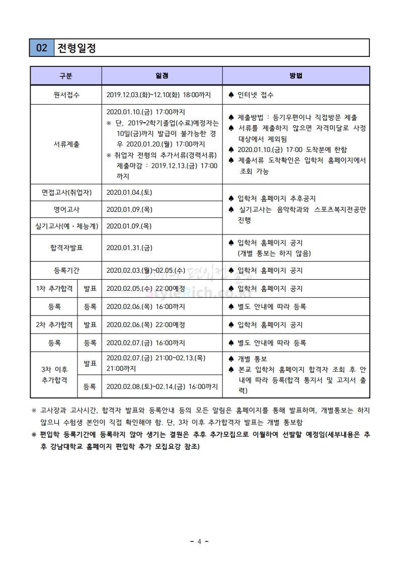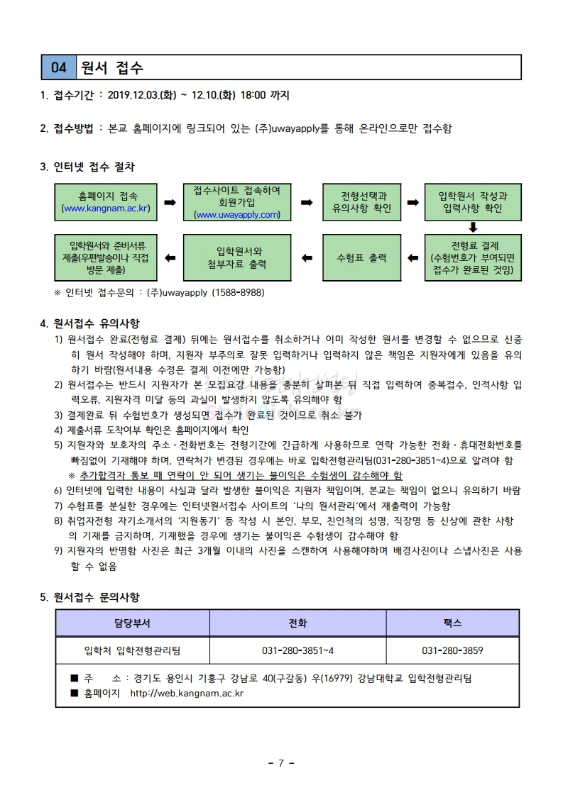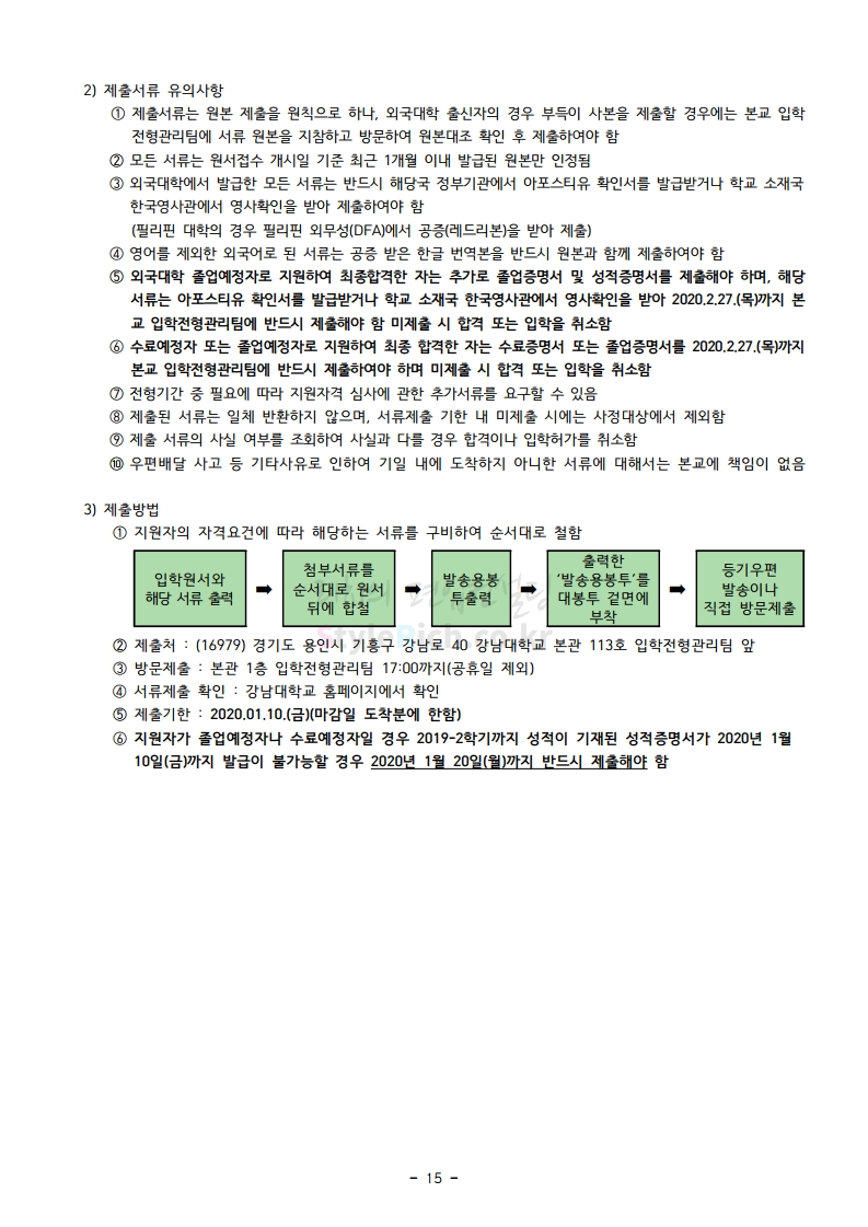강남대 편입 2020학년도 모집요강 간편하게 보자 2019.12.05 00:23 편입 모집요강/2020학년도 모집요강 2020학년도 강남대 편입 모집요강 간편하게 확인하세요. PC와 모바일 모두에서 이미지를 클릭(터치) 후 이미지의 좌우측을 각각 클릭하면 모집요강 순서를 앞뒤로 넘길 수 있습니다. 좌측 클릭(터치)는 이전 페이지, 우측 클릭(터치)는 다음 페이지입니다. * 최종 모집요강 발표 후에도 일부 내용이 변경될 수 있으니 지원 전 반드시 강남대 입학처의 모집요강을 확인하시기 바랍니다. 2020학년도 강남대 편입 모집요강 다운받기 2020학년도 편입생 모집요강.pdf 0.90MB <출처: 강남대 홈페이지> 강남대학교 외경 드론샷 공유하기 게시글 관리 리치의 편입컨설팅 저작자표시 비영리 변경금지 (새창열림) '편입 모집요강 > 2020학년도 모집요강' 카테고리의 다른 글 이화여대 편입 2020학년도 모집요강 간편하게 보자 (0) 2019.12.06 명지대 편입 2020학년도 모집요강 간편하게 보자 (0) 2019.12.05 경기대 편입 2020학년도 모집요강 간편하게 보자 (0) 2019.12.03 단국대(천안) 편입 2020학년도 모집요강 간편하게 보자 (0) 2019.12.01 단국대(죽전) 편입 2020학년도 모집요강 간편하게 보자 (0) 2019.12.01 댓글 공유하기 다른 글 댓글 이 글 공유하기 구독하기 구독하기 카카오톡 카카오톡 라인 라인 트위터 트위터 Facebook Facebook 카카오스토리 카카오스토리 밴드 밴드 네이버 블로그 네이버 블로그 Pocket Pocket Evernote Evernote 다른 글 이화여대 편입 2020학년도 모집요강 간편하게 보자 이화여대 편입 2020학년도 모집요강 간편하게 보자 2019.12.06 명지대 편입 2020학년도 모집요강 간편하게 보자 명지대 편입 2020학년도 모집요강 간편하게 보자 2019.12.05 경기대 편입 2020학년도 모집요강 간편하게 보자 경기대 편입 2020학년도 모집요강 간편하게 보자 2019.12.03 단국대(천안) 편입 2020학년도 모집요강 간편하게 보자 단국대(천안) 편입 2020학년도 모집요강 간편하게 보자 2019.12.01 다른 글 더 둘러보기