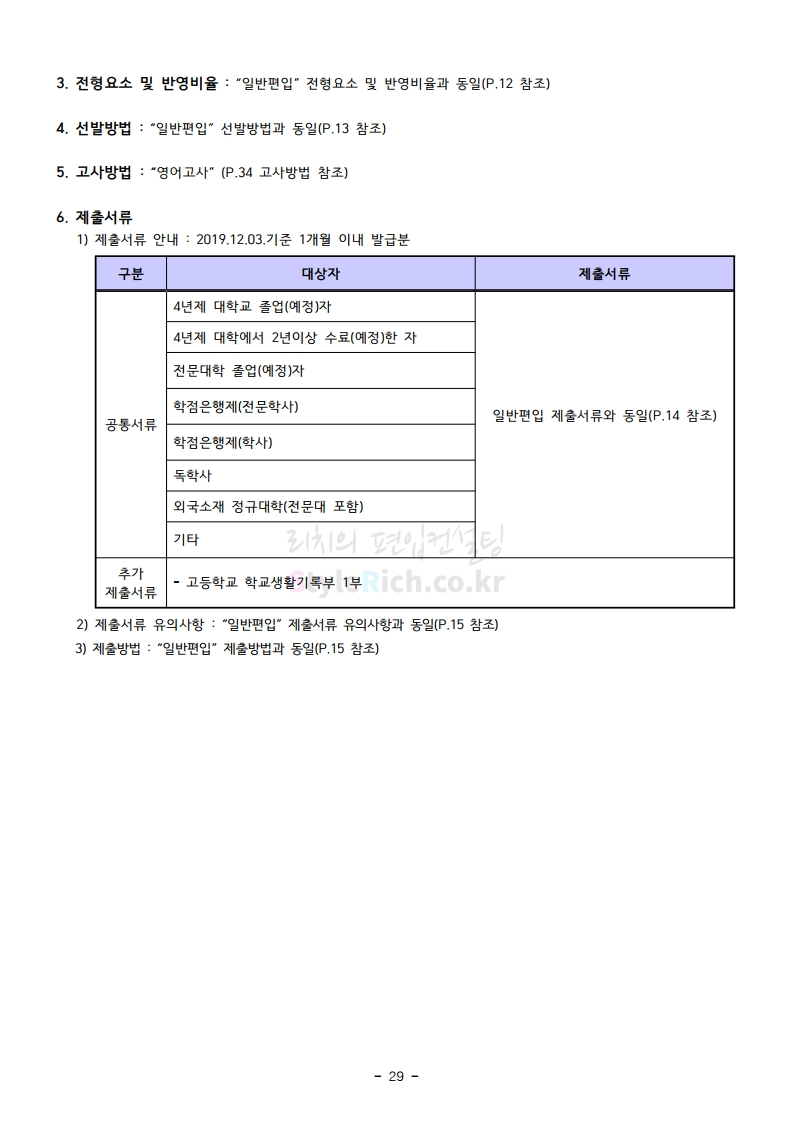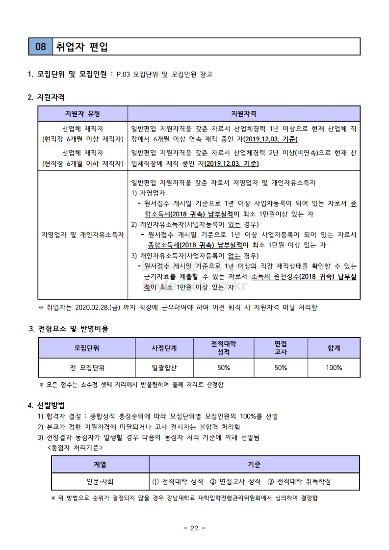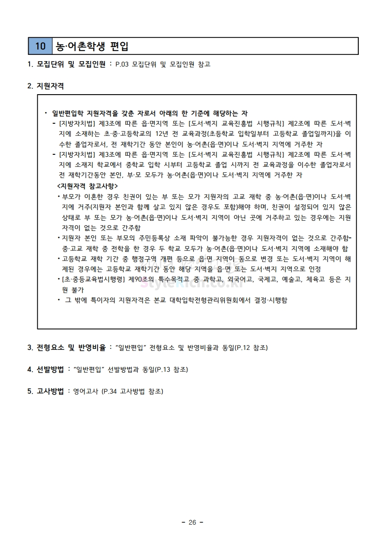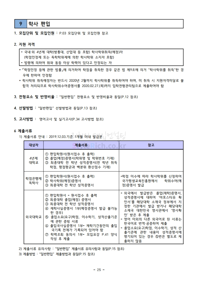 강남대 편입 2020학년도 모집요강 간편하게 보자 2019.12.05 00:23 편입 모집요강/2020학년도 모집요강 2020학년도 강남대 편입 모집요강 간편하게 확인하세요. PC와 모바일 모두에서 이미지를 클릭(터치) 후 이미지의 좌우측을 각각 클릭하면 모집요강 순서를 앞뒤로 넘길 수 있습니다. 좌측 클릭(터치)는 이전 페이지, 우측 클릭(터치)는 다음 페이지입니다. * 최종 모집요강 발표 후에도 일부 내용이 변경될 수 있으니 지원 전 반드시 강남대 입학처의 모집요강을 확인하시기 바랍니다. 2020학년도 강남대 편입 모집요강 다운받기 2020학년도 편입생 모집요강.pdf 0.90MB <출처: 강남대 홈페이지> 강남대학교 외경 드론샷 공유하기 게시글 관리 리치의 편입컨설팅 저작자표시 비영리 변경금지 (새창열림) '편입 모집요강 > 2020학년도 모집요강' 카테고리의 다른 글 이화여대 편입 2020학년도 모집요강 간편하게 보자 (0) 2019.12.06 명지대 편입 2020학년도 모집요강 간편하게 보자 (0) 2019.12.05 경기대 편입 2020학년도 모집요강 간편하게 보자 (0) 2019.12.03 단국대(천안) 편입 2020학년도 모집요강 간편하게 보자 (0) 2019.12.01 단국대(죽전) 편입 2020학년도 모집요강 간편하게 보자 (0) 2019.12.01 댓글 공유하기 다른 글 댓글 이 글 공유하기 구독하기 구독하기 카카오톡 카카오톡 라인 라인 트위터 트위터 Facebook Facebook 카카오스토리 카카오스토리 밴드 밴드 네이버 블로그 네이버 블로그 Pocket Pocket Evernote Evernote 다른 글 이화여대 편입 2020학년도 모집요강 간편하게 보자 이화여대 편입 2020학년도 모집요강 간편하게 보자 2019.12.06 명지대 편입 2020학년도 모집요강 간편하게 보자 명지대 편입 2020학년도 모집요강 간편하게 보자 2019.12.05 경기대 편입 2020학년도 모집요강 간편하게 보자 경기대 편입 2020학년도 모집요강 간편하게 보자 2019.12.03 단국대(천안) 편입 2020학년도 모집요강 간편하게 보자 단국대(천안) 편입 2020학년도 모집요강 간편하게 보자 2019.12.01 다른 글 더 둘러보기