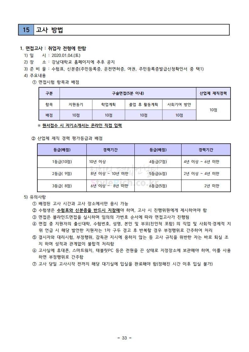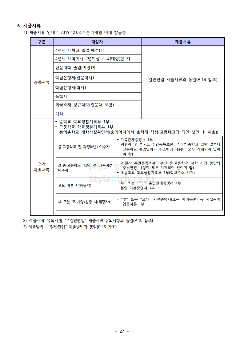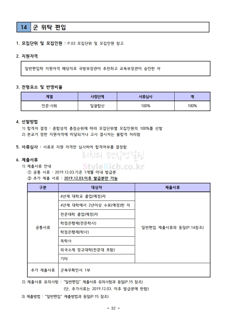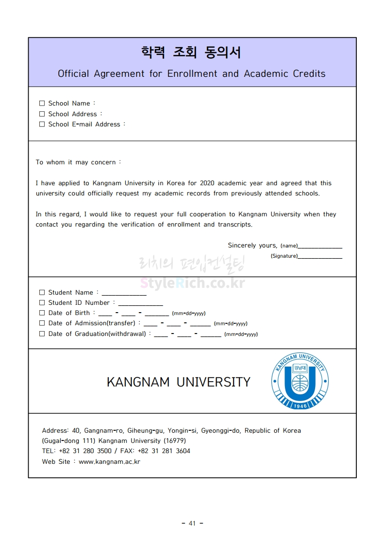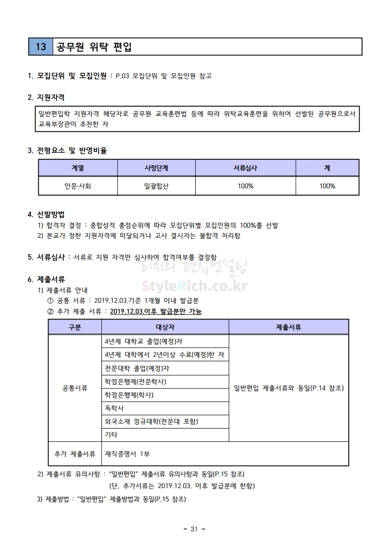 강남대 편입 2020학년도 모집요강 간편하게 보자 2019.12.05 00:23 편입 모집요강/2020학년도 모집요강 2020학년도 강남대 편입 모집요강 간편하게 확인하세요. PC와 모바일 모두에서 이미지를 클릭(터치) 후 이미지의 좌우측을 각각 클릭하면 모집요강 순서를 앞뒤로 넘길 수 있습니다. 좌측 클릭(터치)는 이전 페이지, 우측 클릭(터치)는 다음 페이지입니다. * 최종 모집요강 발표 후에도 일부 내용이 변경될 수 있으니 지원 전 반드시 강남대 입학처의 모집요강을 확인하시기 바랍니다. 2020학년도 강남대 편입 모집요강 다운받기 2020학년도 편입생 모집요강.pdf 0.90MB <출처: 강남대 홈페이지> 강남대학교 외경 드론샷 공유하기 게시글 관리 리치의 편입컨설팅 저작자표시 비영리 변경금지 (새창열림) '편입 모집요강 > 2020학년도 모집요강' 카테고리의 다른 글 이화여대 편입 2020학년도 모집요강 간편하게 보자 (0) 2019.12.06 명지대 편입 2020학년도 모집요강 간편하게 보자 (0) 2019.12.05 경기대 편입 2020학년도 모집요강 간편하게 보자 (0) 2019.12.03 단국대(천안) 편입 2020학년도 모집요강 간편하게 보자 (0) 2019.12.01 단국대(죽전) 편입 2020학년도 모집요강 간편하게 보자 (0) 2019.12.01 댓글 공유하기 다른 글 댓글 이 글 공유하기 구독하기 구독하기 카카오톡 카카오톡 라인 라인 트위터 트위터 Facebook Facebook 카카오스토리 카카오스토리 밴드 밴드 네이버 블로그 네이버 블로그 Pocket Pocket Evernote Evernote 다른 글 이화여대 편입 2020학년도 모집요강 간편하게 보자 이화여대 편입 2020학년도 모집요강 간편하게 보자 2019.12.06 명지대 편입 2020학년도 모집요강 간편하게 보자 명지대 편입 2020학년도 모집요강 간편하게 보자 2019.12.05 경기대 편입 2020학년도 모집요강 간편하게 보자 경기대 편입 2020학년도 모집요강 간편하게 보자 2019.12.03 단국대(천안) 편입 2020학년도 모집요강 간편하게 보자 단국대(천안) 편입 2020학년도 모집요강 간편하게 보자 2019.12.01 다른 글 더 둘러보기